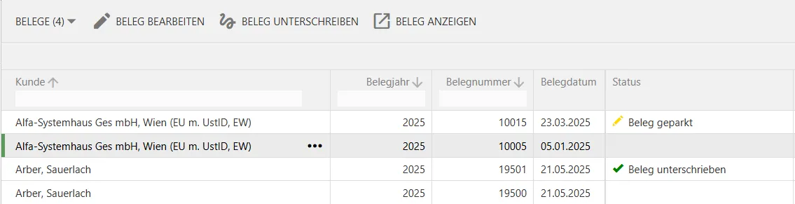 - Beleg unterschreiben