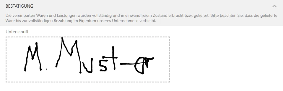 Über die Schaltfläche Unterschrift kann der Kunde seine digitale Unterschrift direkt auf dem mobilen Gerät leisten.